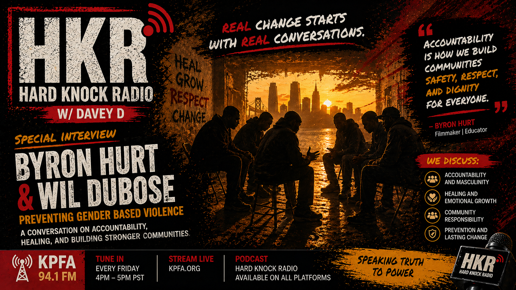 (HKR-04-22-26): On a powerful episode of Hard Knock Radio, host Davey D sat down with filmmaker Byron Hurt and Wil DuBose of the New Jersey Coalition to End Domestic Violence to unpack the roots of gender based violence and the urgent need for accountability, healing, and community intervention.